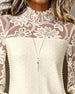 SPECIFICATIONS Top Type: Tops Style: Casual Material: Cotton Blends,Lace Occasion: Daily Neckline: High Neck Pattern Type: Floral Sleeve Type: Regular sleeve Sleeve Length: Long Sleeve Fit Type: Regular Season: Fall,Winter Details: Lace Package Includes: 1 x Top SIZE TABLE Size Bust Length CM INCH CM INCH S 97 38.19 65 25.59 M...
