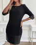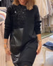 Pu Leather Patchwork Round Neck Dress