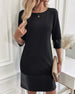 SPECIFICATIONS Style: Casual Material: Cotton Blends Dress Type: Shift dress Dress Length: Knee Length Neckline: Round Neck Pattern Type: Solid Color Sleeve Type: Raglan sleeve Sleeve Length: Long Sleeve Details: Patchwork Fit Type: Regular Season: Spring,Fall,Winter Occasion: Daily Package Includes: 1 x Dress SIZE TABLE Size Bust Le...