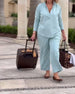 SPECIFICATIONS Top Type: Tops Style: Casual Material: Cotton Blends Occasion: Daily Neckline: V neck_V Pattern Type: Solid Color Sleeve Type: Regular sleeve Sleeve Length: Long Sleeve Fit Type: Regular Season: Spring,Summer,Fall Details: Buttons Package Includes: 1 x Top SIZE TABLE Size Bust Length CM INCH CM INCH S 97 38.19 65 ...