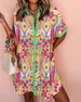 Lapel Colorful Print Shirt Dress