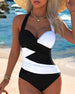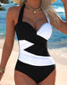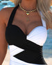 Contrast Color Crossover One-Piece Swimsuit