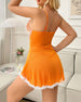 Floral Lace Halter Babydoll Lingerie Dress With Thong