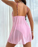 Floral Lace Halter Babydoll Lingerie Dress With Thong