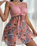 Soft Absorbent Quick-Dry Wearable Bath Towel Skirt with Floral Pattern Pocket