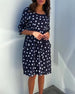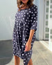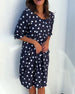 SPECIFICATIONS Style: Casual Material: Cotton Blends Dress Type: A-Line Dress Length: Knee Length Neckline: Round Neck Pattern Type: Polka Dot Sleeve Type: Regular sleeve Sleeve Length: 3/4 Sleeve Fit Type: Regular Season: Spring, Summer Occasion: Daily, Vacation Package Includes: 1 x Dress SIZE TABLE Size Bust Length CM INCH CM INCH ...