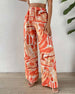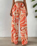 SPECIFICATIONS Style: Casual Material: 5% Spandex, 95% Polyester Pattern Type: Print Pants Type: Wide Leg Pants Length: Long Waist Type: High Waist Fit Type: Regular Season: Spring, Summer Details: Drawstring Occasion: Daily, Vacation Package Includes: 1 x Pants SIZE TABLE Size Waist Length Hip CM INCH CM INCH CM INCH S 6...