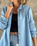 SPECIFICATIONS Top Type: Tops Style: Casual Material: Denim Occasion: Daily Neckline: Shirt Collar Pattern Type: Solid Color Sleeve Type: Regular sleeve Sleeve Length: Long Sleeve Fit Type: Regular Season: Spring, Summer, Fall Details: Buttons Package Includes: 1 x Top SIZE TABLE Size Bust Length cm inch cm inch S 100 39.4 7...