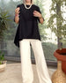 SPECIFICATIONS Style: Casual Top Type: T-shirt Category: Sets Material: Cotton and linen Pattern Type: Solid Color Neckline: Round Neck Sleeve Type: Regular sleeve Sleeve Length: Short Sleeve Pants Length: Long Waist Type: Mid Waist Fit Type: Regular Season: Spring,Summer Details: Pocket Occasion: Daily Package Includes: 1 x T-shirt, 1 x Pants...