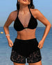 Solid color lace halter bikini