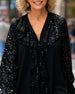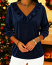 Solid Color Ruffled V-Neck Blouse