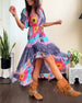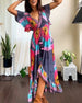 SPECIFICATIONS Style: Casual, Vacation Material: Cotton Blends Dress Type: A-Line Dress Length: Midi Neckline: V neck_V Pattern Type: Print Sleeve Type: Ruffle Sleeve Sleeve Length: Short Sleeve Details: Ruffle Fit Type: Regular Season: Spring, Summer Occasion: Daily, Vacation Package Includes: 1 x Dress SIZE TABLE Size Bust Length...