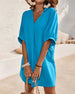 SPECIFICATIONS Style: Casual Material: Cotton Blends Dress Type: Shift dress Dress Length: Knee Length Neckline: V neck_V Pattern Type: Solid Color Sleeve Type: Regular sleeve Sleeve Length: Half Sleeve Fit Type: Regular Season: Spring, Summer Occasion: Daily Package Includes: 1 x Dress SIZE TABLE Size Bust Length CM INCH CM INCH S ...