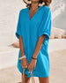 SPECIFICATIONS Style: Casual Material: 40% Cool Kotton,60% Polyester Dress Type: A-Line Dress Length: Maxi Neckline: Lapel Pattern Type: Solid Color Sleeve Type: Regular sleeve Sleeve Length: 3/4 Sleeve Details: Patchwork,Pocket Fit Type: Regular Season: Spring,Summer Occasion: Daily Package Includes: 1 x Dress SIZE TABLE S...