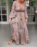 SPECIFICATIONS Style: Casual, Elegant Material: Cotton Blends Dress Type: A-Line Dress Length: Maxi Neckline: V neck_V Pattern Type: Print Sleeve Type: Ruffle Sleeve Sleeve Length: 3/4 Sleeve Details: Tassel, Shirred, Drawstring Fit Type: Regular Season: Spring, Summer Occasion: Daily, Vacation Package Includes: 1 x Dress SIZE TABLE ...