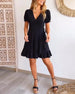 SPECIFICATIONS Style: Elegant Material: Cotton Blends Dress Type: A-Line Dress Length: Above-knee Neckline: V neck_V Pattern Type: Solid Color Sleeve Type: Puff Sleeve Sleeve Length: Short Sleeve Details: Lace Up, Ruffle Fit Type: Regular Season: Spring, Summer, Fall Occasion: Daily Package Includes: 1 x Dress SIZE TABLE Size ...