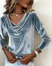 SPECIFICATIONS Top Type: Tops Style: Casual Material: Cotton Blends Occasion: Daily Neckline: Draped Collar Pattern Type: Solid Color Sleeve Type: Raglan sleeve Sleeve Length: Long Sleeve Fit Type: Loose Season: Fall,Winter Package Includes: 1 x Top SIZE TABLE Size Bust Length CM INCH CM INCH S 92 36.22 65 25.59 M 96 37.8 66.5...