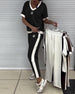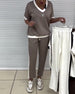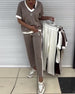 SPECIFICATIONS Style: Casual Top Type: Blouses Category: Sets Material: Cotton Blends Pattern Type: Color Block Neckline: V neck_V Sleeve Type: Regular sleeve Sleeve Length: Short Sleeve Pants Type: Conventional Pants Length: Long Waist Type: Mid Waist Fit Type: Regular Season: Spring,Summer Occasion: Daily Package Includes: 1 x Blouse, 1 x Pa...