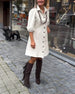 SPECIFICATIONS Style: Casual Material: Cotton Blends Dress Type: Shift dress Dress Length: Above-knee Neckline: Lapel Sleeve Type: Lantern Sleeve Sleeve Length: 3/4 Sleeve Fit Type: Regular Season: Fall,Winter Occasion: Daily Package Includes: 1 x Dress SIZE TABLE Size Bust Length CM INCH CM INCH S 97 38.19 95 37.40 M 101 39.76 96 3...