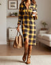 SPECIFICATIONS Style: Casual Material: Cotton Blends Dress Type: Shift dress Dress Length: Knee Length Neckline: Lapel Pattern Type: Plaid,Print Sleeve Type: Regular sleeve Sleeve Length: Long Sleeve Details: Buttons Fit Type: Regular Season: Fall,Winter Occasion: Daily Package Includes: 1 x Dress SIZE TABLE Size Bust Length CM INC...