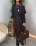 SPECIFICATIONS Style: Elegant,Party Top Type: Pullovers Dress Type: Cami Category: Sets Material: Mesh,Acrylic,Spandex,Polyester Pattern Type: Solid Color Neckline: Cold Shoulder Sleeve Type: Bat sleeve Sleeve Length: Long Sleeve Dress Length: Midi Waist Type: High Waist Fit Type: Loose Season: Spring,Fall,Winter Details: Patchwork,Shirred Occ...