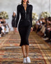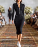 SPECIFICATIONS Style: Casual Material: Cotton Blends Dress Type: Shift dress Dress Length: Midi Neckline: V neck_V Pattern Type: Solid Color Sleeve Type: Regular sleeve Sleeve Length: Long Sleeve Details: Zipper Fit Type: Skinny Season: Spring,Fall,Winter Occasion: Daily Package Includes: 1 x Dress SIZE TABLE Size Bust Length CM INC...