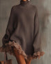 SPECIFICATIONS Style: Elegant,Vintage Material: Cotton Blends Dress Type: Shift dress Dress Length: Above-knee Neckline: High Neck Pattern Type: Solid Color Sleeve Type: Dropped shoulder Sleeve Length: Long Sleeve Details: Ruffle Fit Type: Loose Season: Spring,Fall,Winter Occasion: Daily Package Includes: 1 x Dress SIZE TABLE Size Bu...