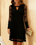 SPECIFICATIONS Style: Elegant Material: Cotton Blends Dress Type: Shift dress Dress Length: Knee Length Neckline: Round Neck Pattern Type: Solid Color Sleeve Type: Raglan sleeve Sleeve Length: Long Sleeve Details: Lace Fit Type: Regular Season: Fall, Winter Occasion: Daily, Vacation Package Includes: 1 x Dress SIZE TABLE Size Bust Length ...
