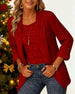Faux Two-Piece Printed Long-Sleeved Blouse