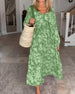 SPECIFICATIONS Style: Casual, Vacation Material: 3% Spandex,97% Polyester Dress Type: A-Line Dress Length: Maxi Neckline: V neck_V Pattern Type: Floral Sleeve Type: Lantern Sleeve Sleeve Length: Long Sleeve Details: Shirred, Drawstring Fit Type: Regular Season: Spring, Summer Occasion: Daily, Vacation Package Includes: 1 x Dress SIZE TABLE...
