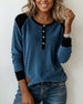 SPECIFICATIONS Top Type: Tops Style: Casual Material: Cotton Blends Occasion: Daily Neckline: Round Neck Pattern Type: Color Block Sleeve Type: Regular sleeve Sleeve Length: Long Sleeve Fit Type: Regular Season: Spring, Fall, Winter Details: Buttons Package Includes: 1 x Top SIZE TABLE Size Bust Length CM INCH CM INCH S 95 3...