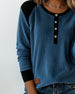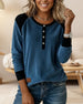 SPECIFICATIONS Top Type: Tops Style: Casual Material: Cotton Blends Occasion: Daily Neckline: Round Neck Pattern Type: Solid Color Sleeve Type: Raglan sleeve Sleeve Length: Long Sleeve Fit Type: Regular Season: Spring,Fall,Winter Details: Patchwork,Buttons Package Includes: 1 x Top SIZE TABLE Size Bust Length CM INCH CM INCH S 9...