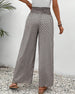 SPECIFICATIONS Style: Elegant Material: 5% Spandex, 95% Polyester Pattern Type: Geometric Print Pants Type: Wide Leg Pants Length: Long Waist Type: High Waist Fit Type: Regular Season: Spring, Summer, Fall Details: Drawstring Occasion: Daily Package Includes: 1 x Pants SIZE TABLE Size Waist Length CM INCH CM INCH S 67 26.3...