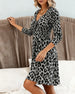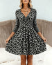 SPECIFICATIONS Style: Casual Material: Cotton Blends Dress Type: A-Line Dress Length: Knee Length Neckline: V neck_V Pattern Type: Leopard Sleeve Type: Regular sleeve Sleeve Length: Long Sleeve Details: Shirred Fit Type: Regular Season: Fall,Winter Occasion: Daily Package Includes: 1 x Dress SIZE TABLE Size Bust Length CM INCH CM I...