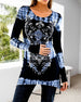 SPECIFICATIONS Style: Elegant,Business Category: Sets Material: Cotton Blends Pattern Type: Print Neckline: Round Neck Sleeve Type: Regular sleeve Sleeve Length: Long Sleeve Pants Type: Conventional Pants Length: Long Waist Type: Mid Waist Fit Type: Regular Season: Spring,Summer,Fall Details: Patchwork Occasion: Daily,Work Package Includes: 1 ...