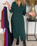 SPECIFICATIONS Style: Casual Material: Cotton Blends Dress Type: Shirt Dress Length: Maxi Neckline: V neck_V Pattern Type: Solid Color Sleeve Type: Regular sleeve Sleeve Length: Long Sleeve Details: Buttons Fit Type: Regular Season: Fall, Winter Occasion: Daily, Vacation Package Includes: 1 x Dress SIZE TABLE Size Bust Length CM INCH CM...