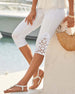 SPECIFICATIONS Style: Casual, Elegant Material: Lace, Polyester Pattern Type: Solid Color Pants Type: Conventional Pants Length: 3/4 Long Waist Type: High Waist Fit Type: Regular Season: Spring, Summer, Fall Details: Patchwork, Lace Occasion: Daily Package Includes: 1 x Pants SIZE TABLE (cm) Size Length Waist CM INCH CM IN...
