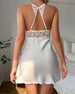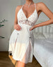 SPECIFICATIONS Style: Sexy Material: Cotton Blends Dress Type: A-Line Dress Length: Above-knee Neckline: V neck_V Pattern Type: Solid Color Sleeve Length: Sleeveless Details: Patchwork,Backless,Lace Fit Type: Regular Season: Spring,Summer,Fall,Winter Occasion: Daily Package Includes: 1 x Sleep Dress SIZE TABLE Size Bust Length CM IN...