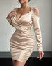 SPECIFICATIONS Style: Sexy Material: Cotton Blends Dress Type: Bodycon Dress Length: Above-knee Neckline: V neck_V Pattern Type: Solid Color Sleeve Type: Regular sleeve Sleeve Length: Long Sleeve Details: Shirred,Lace Fit Type: Regular Season: Fall,Winter Occasion: Daily,Party Package Includes: 1 x Dress SIZE TABLE Size Bust Length CM I...