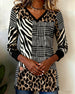 SPECIFICATIONS Style: Casual Material: 3% Spandex, 97% Polyester Dress Type: A-Line Dress Length: Midi Neckline: V neck_V Pattern Type: Leopard Sleeve Type: Regular sleeve Sleeve Length: 3/4 Sleeve Details: Patchwork Fit Type: Regular Season: Spring, Summer, Fall Occasion: Daily Package Includes: 1 x Dress SIZE TABLE Size ...