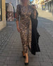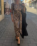 SPECIFICATIONS Style: Casual Material: Cotton Blends Dress Type: Shift dress Dress Length: Maxi Neckline: Round Neck Pattern Type: Leopard Sleeve Type: Regular sleeve Sleeve Length: 3/4 Sleeve Details: Shirred Fit Type: Regular Season: Fall,Winter Occasion: Daily Package Includes: 1 x Dress SIZE TABLE Size Bust Length CM INCH CM INC...