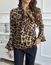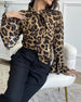 Leopard Print Ribbon Neck Blouse