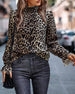 Leopard print puff sleeve casual jacket