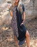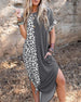 SPECIFICATIONS Style: Casual Material: Cotton Blends Dress Type: Shift dress Dress Length: Midi Neckline: Round Neck Pattern Type: Color Block, Leopard Sleeve Type: Regular sleeve Sleeve Length: Short Sleeve Details: Patchwork, Pocket, Slit Fit Type: Loose Season: Spring, Summer, Fall Occasion: Daily Package Includes: 1 x Dress SIZE TABLE ...