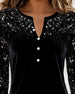 SPECIFICATIONS Top Type: Tops Style: Casual Material: Cotton Blends Occasion: Daily Neckline: V neck_V Pattern Type: Sequin Sleeve Type: Regular sleeve Sleeve Length: Long Sleeve Fit Type: Regular Season: Fall,Winter Package Includes: 1 x Top SIZE TABLE Size Bust Length CM INCH CM INCH S 97 38.19 65 25.59 M 101 39.76 66.5 26.1...