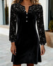 SPECIFICATIONS Style: Elegant,Party Material: Sequins,Velvet Dress Type: Shift dress Dress Length: Knee Length Pattern Type: Polka Dot Sleeve Type: Regular sleeve Sleeve Length: 3/4 Sleeve Details: Patchwork,Buttons,Irregular Fit Type: Regular Season: Spring,Fall,Winter Occasion: Daily Package Includes: 1 x Dress SIZE TABLE Size Bust...