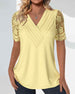SPECIFICATIONS Top Type: Tops Style: Elegant Material: Cotton Blends, Lace Occasion: Daily Neckline: V neck_V Pattern Type: Solid Color Sleeve Type: Regular sleeve Sleeve Length: Short Sleeve Fit Type: Regular Season: Spring, Summer, Fall Details: Patchwork Package Includes: 1 x Top SIZE TABLE Size Bust Length CM INCH...