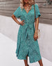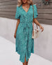 SPECIFICATIONS Style: Elegant Material: Cotton Blends Dress Type: A-Line Dress Length: Midi Neckline: V neck_V Pattern Type: Print Sleeve Type: Regular sleeve Sleeve Length: Short Sleeve Fit Type: Regular Season: Spring, Summer Occasion: Daily, Vacation Package Includes: 1 x Dress SIZE TABLE Size Bust Length CM INCH CM INCH S 95 37....