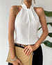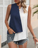 FEATURES This sleeveless top features a solid color, offering a simple yet elegant look. The absence of sleeves makes it comfortable and perfect for warm weather. The classic turn-down collar adds sophistication to its casual style. The subtle pleating at the back enhances its design without overwhelming its minimalist charm. Designed for co...