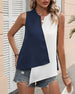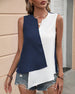 SPECIFICATIONS Top Type: Tank Top Style: Casual Material: Cotton Blends Occasion: Daily Neckline: V neck_V Pattern Type: Color Block Sleeve Length: Sleeveless Fit Type: Regular Season: Spring,Summer Details: Irregular Package Includes: 1 x Tank Top SIZE TABLE Size Bust Length CM INCH CM INCH S 97 38.19 65 25.59 M 101 39.76 66....